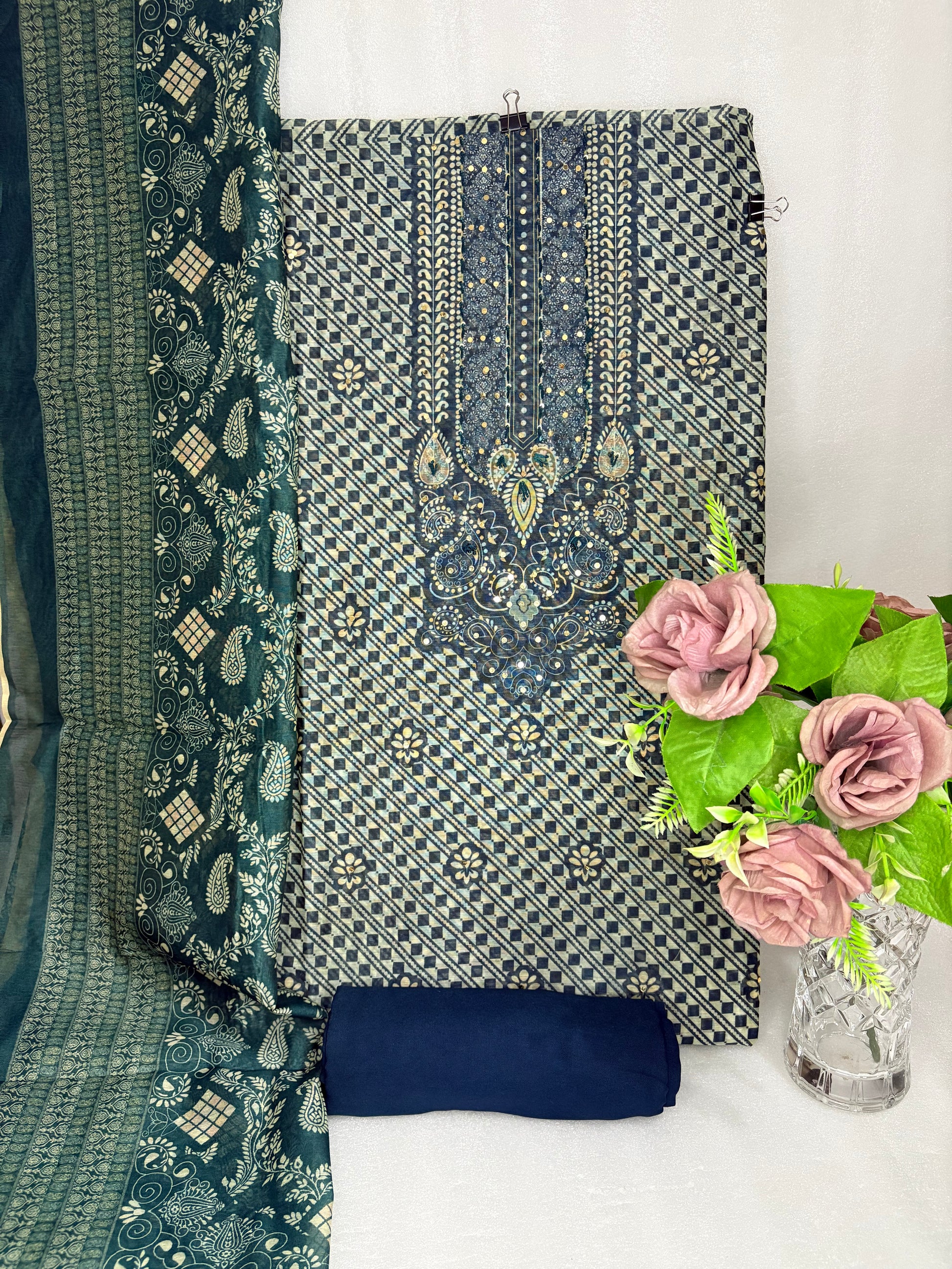 Deep Teal Embroidered Unstitched Suit with Paisley Dupatta