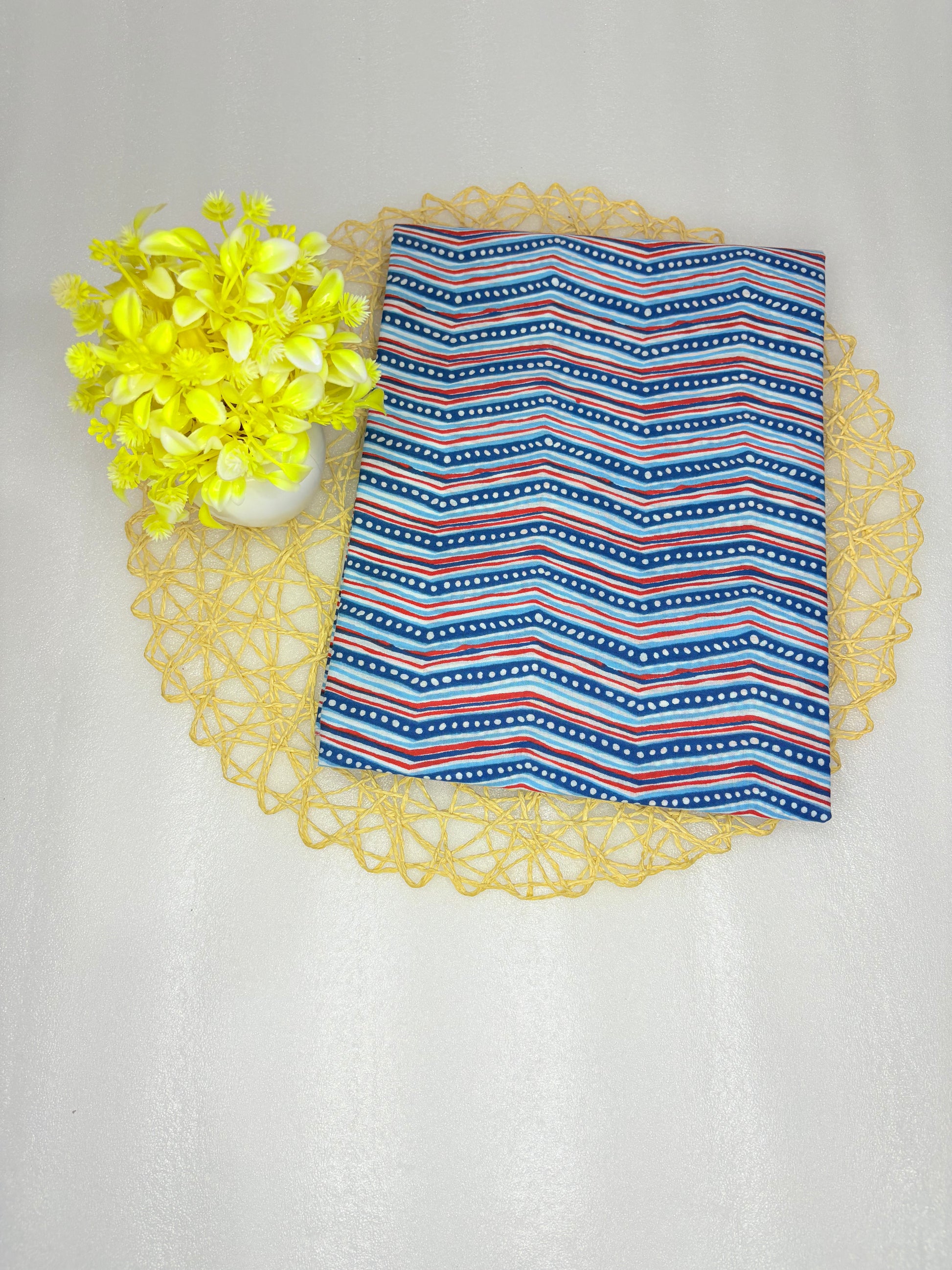 Border: Subtle striped hemline for a neat, tailored finish